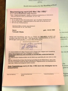 この赤い紙というのは保健所で発行してくれる衛生管理法を理解しましたーという