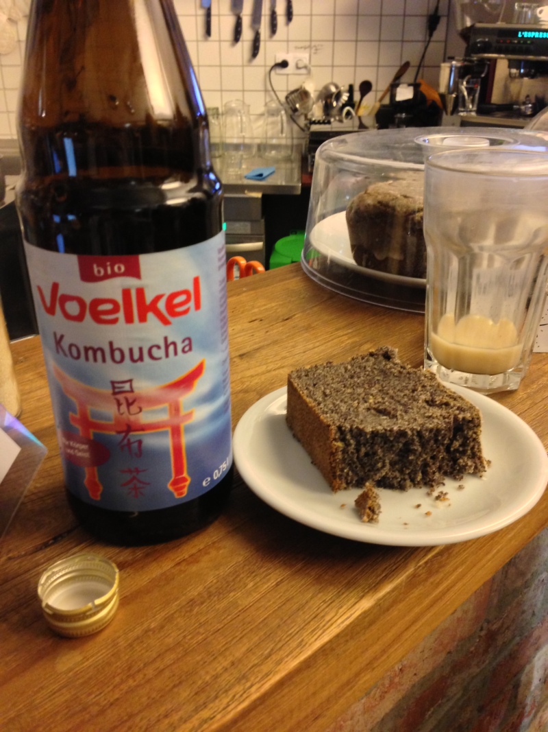 クラスをして、夜にコンブチャとポピーケーキを