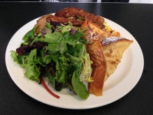 朝食にはハッシュドポテトに焼き野菜